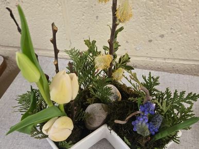2. A vase of mixed spring flowers, 3-5 varieties, may include own foliage.